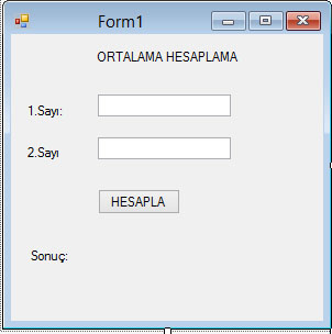 Konunun daha iyi anlaşılması için bir örnek üzerinden devam edelim. Bir form uygulaması açarak, ortalamayı hesaplayan aşağıdaki gibi bir uygulama yapalım.